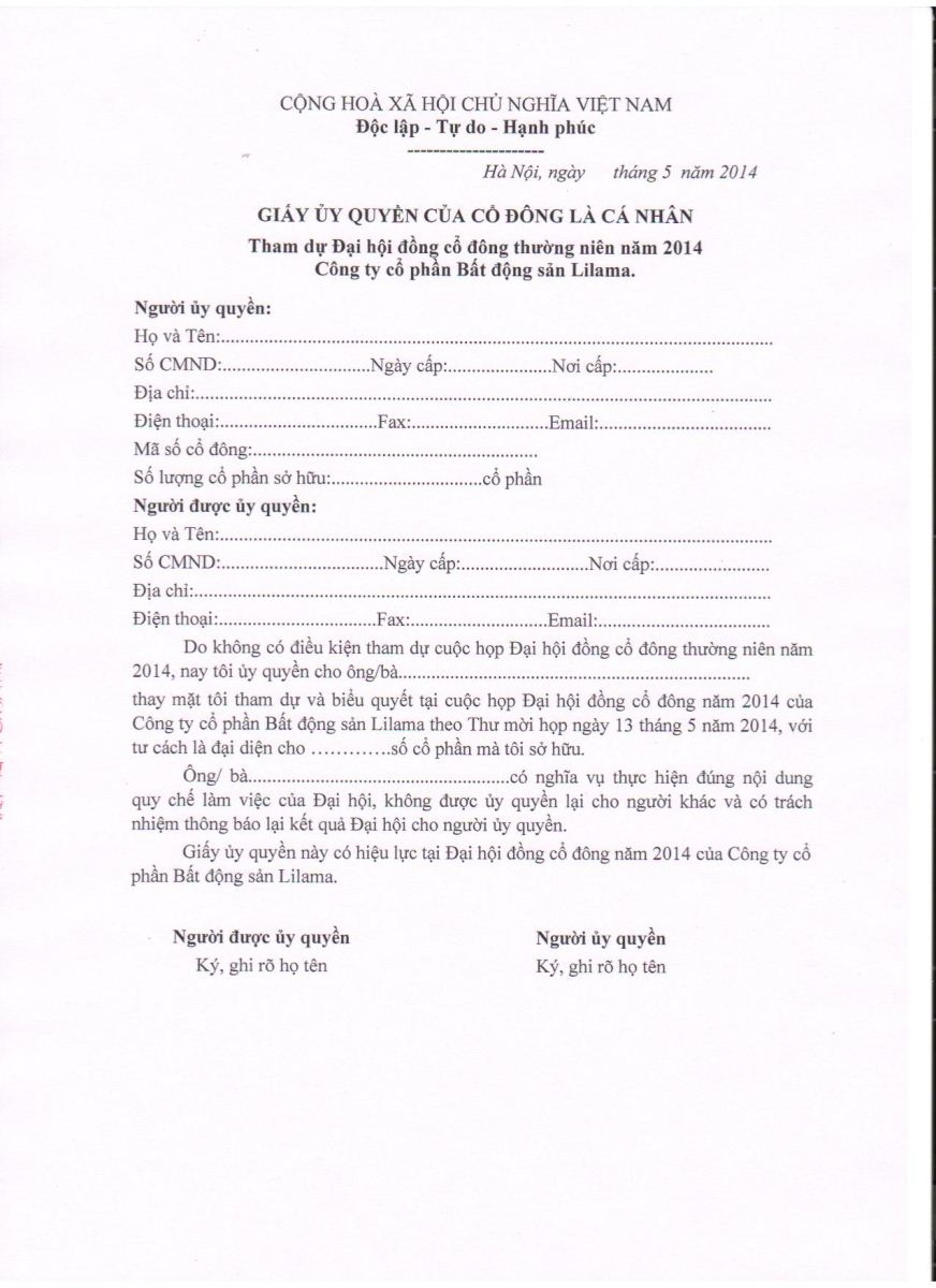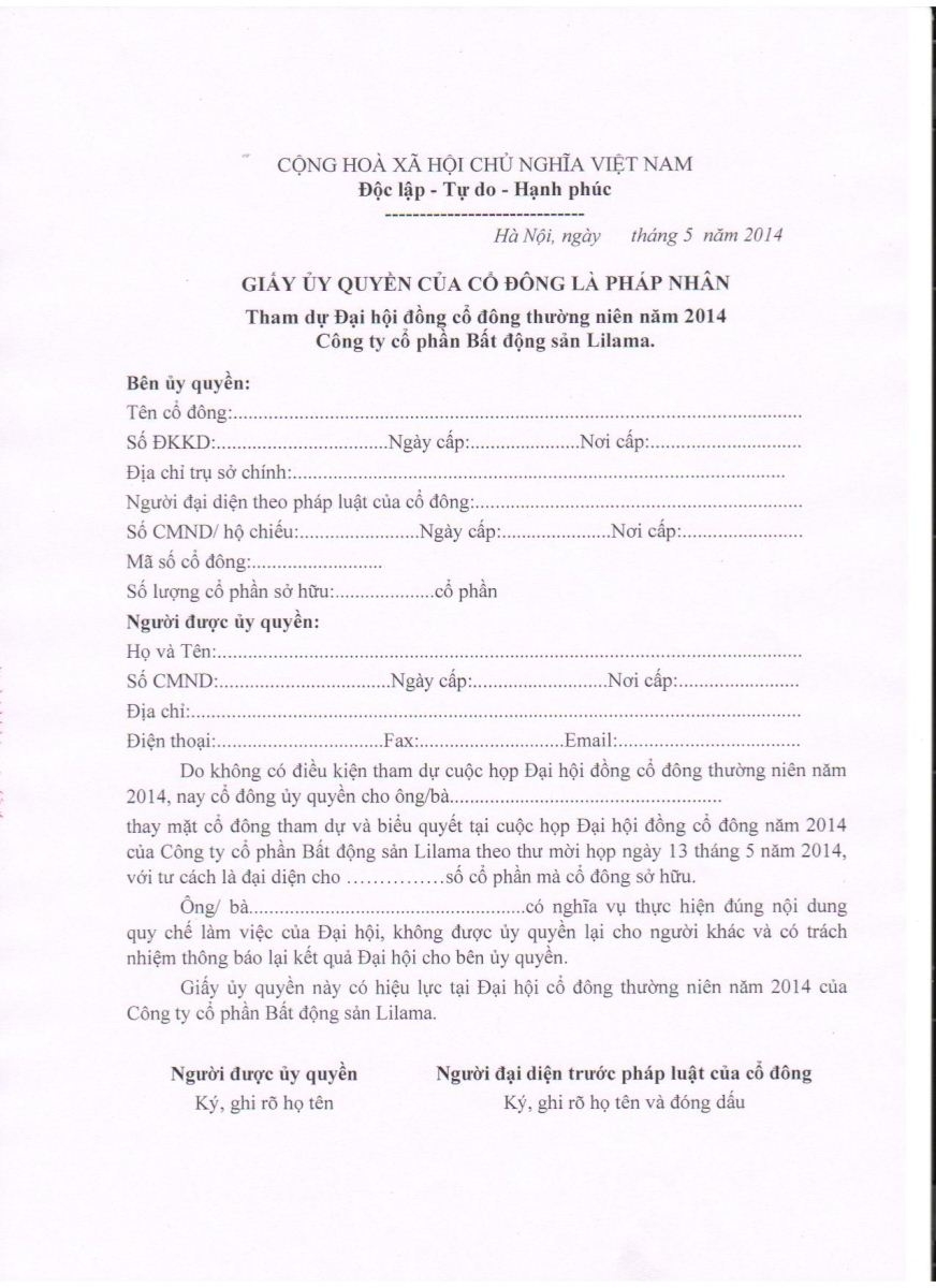 Thư mời họp Đại hội cổ đông 2014
